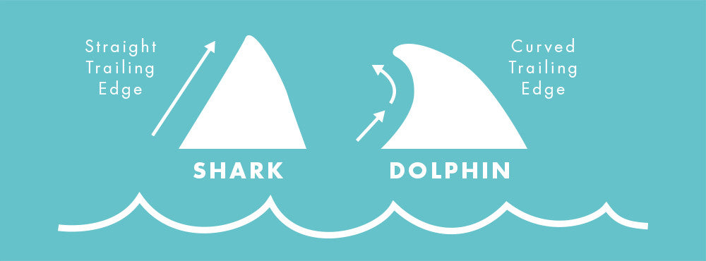 Shark dorsal fins are straight and shark tails are vertically oriented so you may see the tip of the tail following the dorsal fin. Because of this orientation, sharks move in a more linear fashion through the water and the dorsal fins will remain on the surface in a more level manner as compared to dolphins. Sharks get their oxygen through their gills so they don’t need to come to the surface, which is why you can pretty much assume there are sharks around even though you don’t see them. You can blame Hollywood for the iconic-yet-unrealistic shark dorsal fin sightings, most sharks swim mid-water or close to the bottom floor.