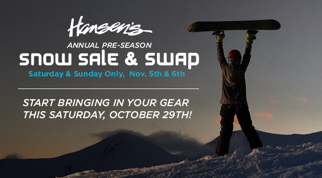 Bring it into Hansen's anytime beginning Saturday, October 29th through Friday, November 4th. An item registration fee and 20% of any item sold will be charged to cover advertising costs. Items will be evaluated for safety prior to registration. No accessories please (i.e. hats, gloves, goggles)