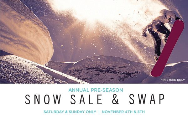 2017 SNOW SALE & SWAPStarting this Saturday, October 28th through Friday, November 3rd,bring your gently used snow clothing and equipment into the shop and we will sell it for you!* An item registration fee and 20% of any item sold will be charged to cover advertising costs. Items will be evaluated for safety prior to registration. No accessories please (i.e. hats, gloves, goggles). Once the sale hits on November 4th and 5th, get up to 50% OFF Skis & Snowboards (Select 2016/2017 Models Only) Clothing & Accessories!