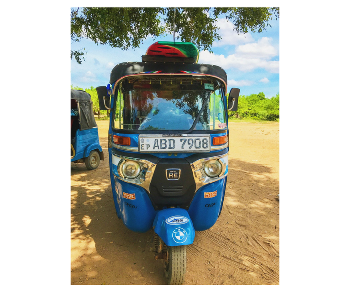 The main mode of transportation around these parts are tuk-tuks, three wheeled vehicles that are sort of a hybrid between a scooter and a golf cart. They go about a maximum of 50 miles per hour, while the public buses here zoom past at lightning speed. The tuk-tuks feel like they’re going to blow over whenever one comes by! Each tuk-tuk driver personalizes their vehicle with stickers, seat covers, posters advertising movies that were released five years ago, stock photos of random babies, etc. Some of the drivers even have put in sound systems, so you can pump up the bollywood jams on your way to surfing. One of my favorite drivers, Anise, let me put a Hansen’s sticker in the VIP location, right on the front bumper of his tuk-tuk.